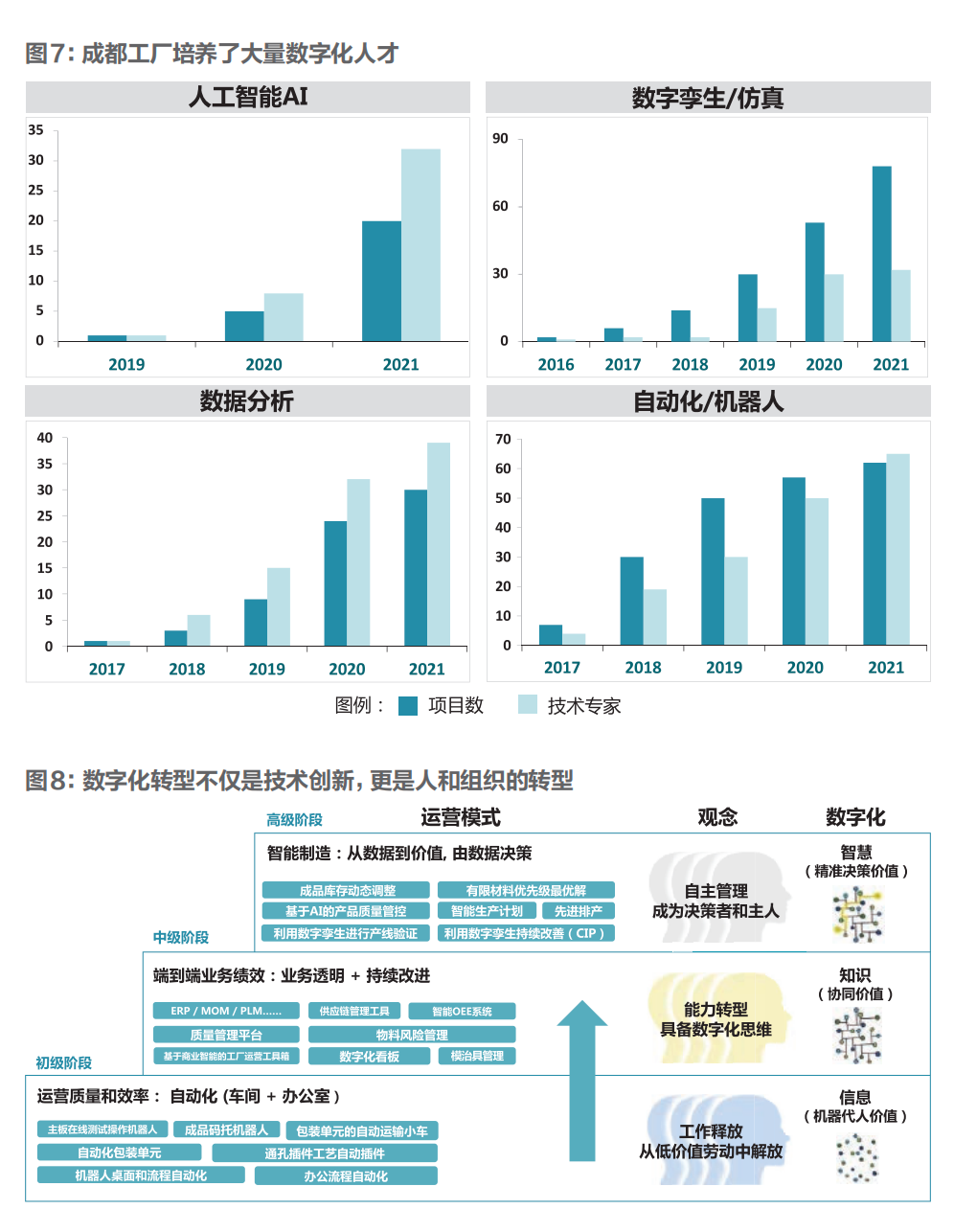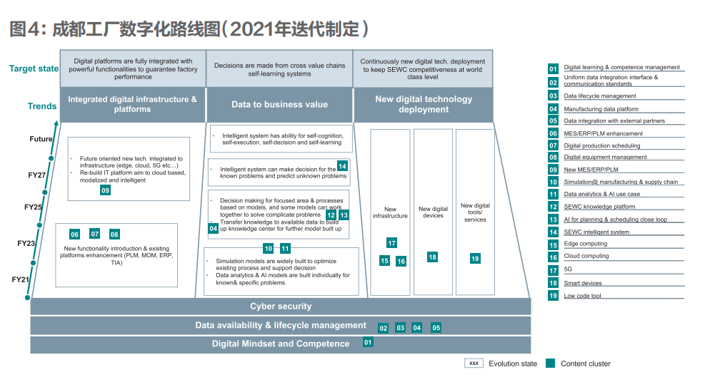隨著新一代信息技術與先進制造技術的融合發展,眾多制造型企業順勢而為,紛紛在數字化轉型的浪潮中揚帆遠航。但在制造型企業突破傳統發展模式、乘浪前行之余,我們仍然需要警惕其向數字化航進過程中,容易觸碰到的暗礁和極易誤入的旋渦,提前做好布局和準備。通過調研和觀察,我們看到制造型企業在數字化轉型過程中往往會陷入“重短期投入、輕長期規劃”“重技術升級、輕精益基礎”“重項目實施、輕人才成長”以及“重效益提升、輕理念進階”四大誤區,容易將數字化轉型的視角局限在簡單的技術升級和項目實施層面,缺乏從員工轉型、組織重塑等維度深層次、系統性地思考和實踐。所幸的是,在對西門子數字化工業集團成都工廠深入調研和了解的過程中,我們看到了一套經過實踐驗證、行之有效的解決方案,即:全方位、漸進式的 “組織變革”。德國西門子公司是工業4.0概念的發起者之一,亦是全球領先的數字化制造業企業。西門子成都工廠是世界經濟論壇第一批“燈塔工廠”之一,該項目被譽為“智能制造的奧斯卡獎”。從成都工廠的數字化轉型經驗來看,組織變革是制造型企業在技術升級基礎上的重要轉型任務,也是制造型企業數字化轉型的必經之路。簡單來說,成都工廠在組織層面經歷了從外到內的兩個變革過程。具體為:過程一:組織外部較為顯性的運營模式和決策模式的轉變。即工廠從以專職數字化團隊來推進數字化項目的“獨立運營模式”,轉變為以業務負責人來推進數字化項目的“融合運營模式”;從基于經驗、中心化的“集中決策模式”,轉變為基于數據和模型、去中心化的“下沉決策模式”。過程二:組織內部相對隱性的管理模式和企業文化的轉變。即工廠領導者從關注痛點、短期績效和執行的“傳統管理模式”,轉變為關注機會、長期發展、創新以及人員成長的“新型管理模式”;從奉行高度執行力、最優績效的“剛性企業文化”,轉變為倡導以人為主、創造力和執行力相結合的“柔性企業文化”。沒有這兩個層面的組織變革,企業的數字化轉型就是無本之木。成都工廠組織變革的成功有三大要素,其一是工廠自主設計的“數字化實施路線圖”,其二是工廠始終堅持的“精益先行理念”,其三是工廠全力推行的“業務與員工雙贏的創新機制”。這三大要素的形成,部分依托于西門子數字化工業集團“精益數字化工廠”計劃,但更多源于成都工廠自身的業務發展需求和實踐總結。通過組織變革,成都工廠不僅成長為創新型組織和學習型組織,而且過去五年,在工廠藍領人數增長100%、白領人數增長10%的情況下,工廠產值增長超過300%,工廠員工也從低價值的重復勞動中解放出來,成為兼具數字化思維和能力的數字化人才。目前,成都工廠的數字化轉型已經從信息集成、知識積累階段,逐漸邁向智慧運營階段。相應地,工廠數字化發揮的價值也從機器代人價值、協同價值,逐漸升級為精準決策價值。近年來,數字化轉型浪潮席卷而來,制造型企業對人工智能、大數據等數字化技術的應用如火如荼,但身處技術變革力量所帶來的競爭壓力之下,企業的數字化轉型并非一帆風順,多數企業尚處于推進“數字化”階段,并未實現真正的“轉型”。具體而言,一方面,企業數字化技術的導入僅停留在示范“樣板間”,未實現規?;瘧?;另一方面,隨著數字化技術的導入和應用,企業并未在組織層面實現轉型,這又導致數字化轉型遲遲不及預期。通過觀察和剖析制造型企業的數字化轉型過程,我們看到企業往往存在四大誤區:誤區1:重短期投入、輕長期規劃。即企業注重短期投入而缺乏服務于其長期戰略的數字化建設路線圖。在相應誤區下,企業數字化項目的實施與其運營目標脫節,導致基層員工看不到數字化項目的應用價值;數字化項目實施周期長、效果不確定,業務部門看不到中短期投資回報,進而懷疑其價值;各個部門各自為戰也導致企業無法實現跨部門、端到端的協同,而數字化方案的效果,往往又離不開這種協同。誤區2:重技術升級、輕精益基礎。即企業缺乏精益基礎且未將精益制造的理念貫穿數字化轉型的始終。在相應誤區下,企業往往寄希望于通過數字化解決流程不精益的問題,造成很多浪費被固化在工廠生產運營中;在問題出現時,企業往往“頭痛醫頭、腳痛醫腳”,不追究也找不到問題的根源;企業在缺乏精益文化時,涉及運營模式、決策模式等的轉型也很難推進。誤區3:重項目實施、輕人才成長。即員工數字化能力并未隨著企業數字化項目的實施同步提升。在相應誤區下,最了解一線問題的基層員工只是數字化轉型的旁觀者,他們既提不出高質量的項目需求,也無法勝任數字化轉型后的崗位職責,導致項目周期長且效果差;項目結束后,基層員工并未掌握和駕馭新的數字化工具,內心更是不愿意接受數字化,導致企業無法持續迭代升級、進入自主創新階段。誤區4:重效益提升、輕理念進階。即企業把數字化當做效益提升的工具但忽略了在組織理念進階方面帶來的機會。在相應誤區下,從企業領導者到基層員工均排斥轉型,企業的數字化建設僅停留在以機器代人為代表的工具平臺層面,即“黑燈工廠”階段;相應地,企業的管理、文化等理念未做轉型和提升,進而高水平的轉型效果無法發揮,導致企業無法實現通過數字化轉型提升競爭力的